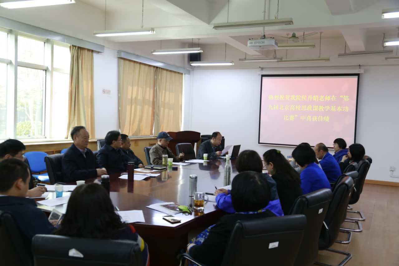 在4月15日北京市委教工委组织举办的“第九届北京高校思政课教学基本功比赛”预赛中,我院侯丹娟老师获得思修组三等奖,为学校和学院赢得了荣誉。学院侯丹娟老师进行了表彰,同时对周作芳老师和张艳老师两位教研室主任在赛前教学观摩活动中的组织工作给予了表扬。