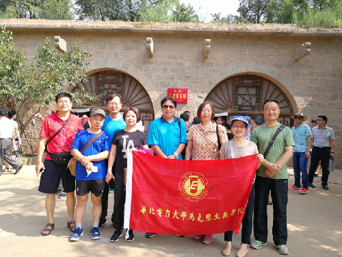 参观杨家岭革命旧址,并在七大会址大礼堂前合影。
