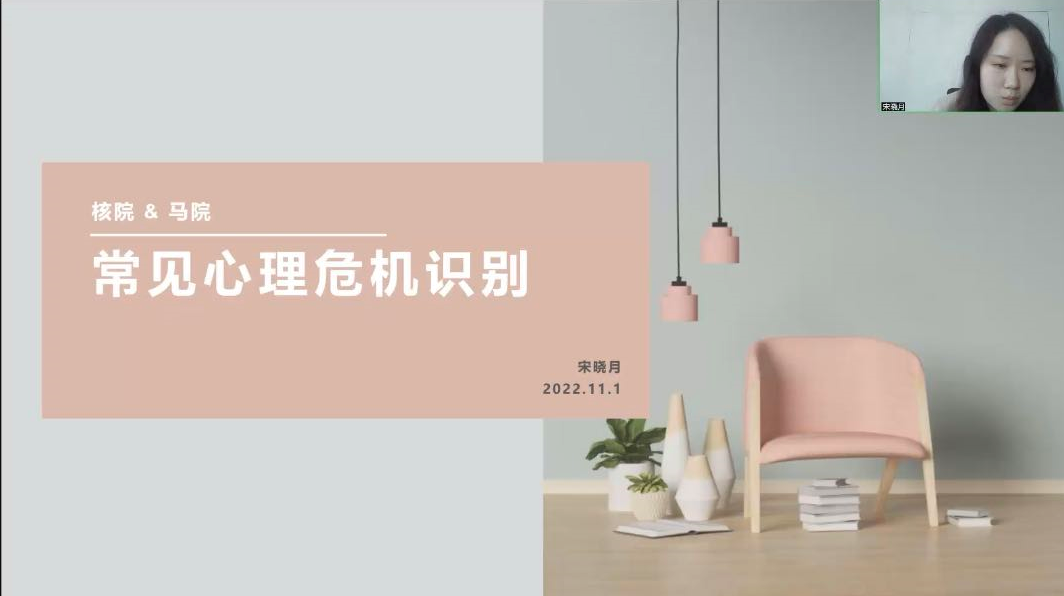 为贯彻落实习近平关于新时代高等教育的重要思想,有效预防各类心理健康问题,帮助大学生树立心理健康意识,11月1日下午,Beat365官方网站心理健康教育中心对Beat365官方网站和核科学与工程学院统一开展心理危机识别培训活动,活动由Beat365官方网站心理健康教育中心助教宋晓月主持,各学院的心理委员以及宿舍长参加培训会议。