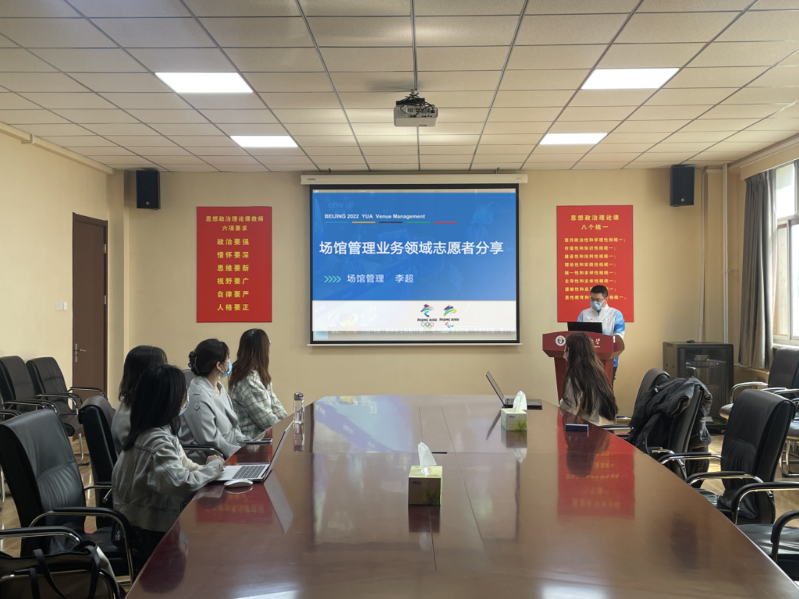 观看完表彰大会后,北京2022年冬奥会、冬残奥会志愿者、研马2055班班长李超为大家分享自己参与志愿服务保障工作的心得体会。李超图文并茂地介绍了自己在场馆管理业务领域的基本工作,以“五个高”概括其工作的主要内容,即高站位谋划顶层设计、高效率完成场馆运行管理、高要求建设场馆人员团队、高起点发挥党建群团作用、高质量做好场馆服务保障工作。李超倡议我院团员青年要找准自身定位,把北京冬奥精神内化于心,外化于行,在奋力谱写全面建设社会主义现代化国家的篇章中展现自身作为。