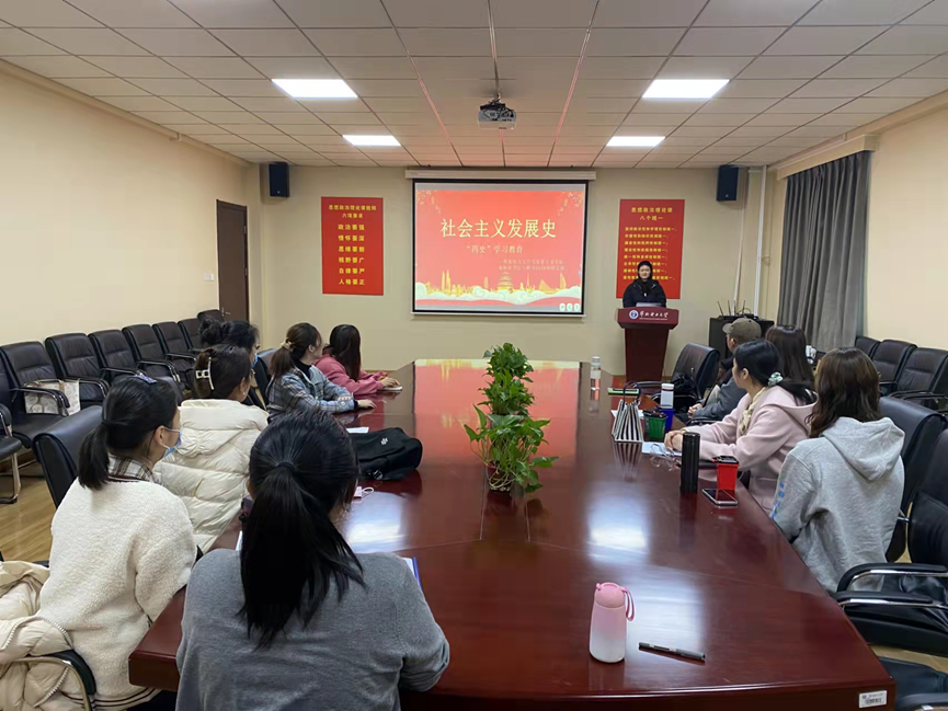 为深化“四史”学习教育,切实增强理论知识与实践能力,加强同学们对四史的理解,跟换地传承红色精神。2021年11月12日下午四点,Beat365官方网站研究生会与研马2158班团支部于教三C220联合开展“学四史之社会主义发展史读书会”主题活动,活动由读书会会长王紫荆主持,研一全体学生参加。