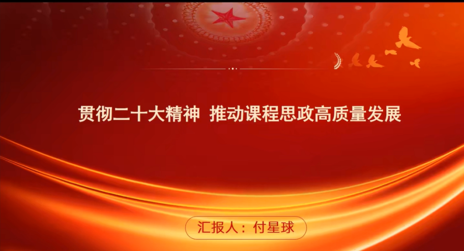 随后,由数理学院基础物理教研室党支部付星球老师对本次专题活动进行导学。首先,付老师强调,贯彻党的二十大精神,需要进一步增强课程思政建设的历史主动性。他指出,十三大以来党中央对教育事业高度重视,教育的基础性、先导性、全局性地位越发凸显,应结合未来高等教育发展的六项原则和六大变革方向,充分发挥高等教育在社会主义现代化强国建设中的支撑引领作用。其次,付老师阐述了深化思政课程建设,持续提升物理教学质量的重要意义,认为课程思政建设是全面提升物理课程育人、增进课程建设功效的新动能和新优势。同时,付老师介绍了具体的措施:一是全方位加强对于学生价值观塑造的教育、引导和熏陶;二是围绕提高人才自主培养质量目标,开辟物理课程思政建设的新领域、新赛道;三是全面提升教师的政治素养、思想品格、精神境界、育人能力。最后,付老师在总结中呼吁,要将课程思政当做事业来做,当做学术来做,不断为党和国家培养高质量的人才。