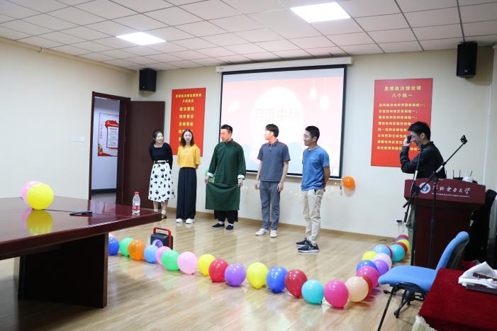 接下来是游戏环节:萝卜蹲,由四名同学和盖立涛老师参加,拉近了师生距离的同时又活跃了现场的气氛。