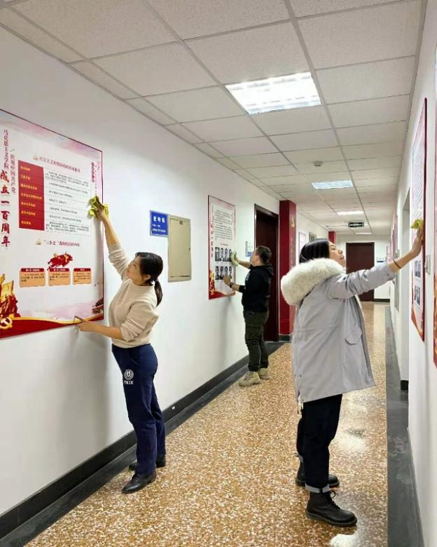 活动中,老师们齐心协力,分工合作,有效地清理了各块展板的灰尘,展览环境焕然一新,老师们以实际行动将党史学习主题教育“办实事”的要求落到实处。
