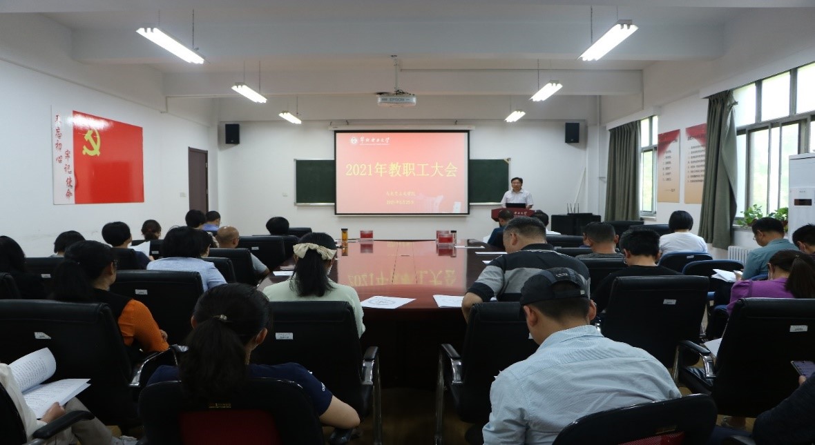 5月25日下午,Beat365官方网站2021年教职工大会在教三楼C220准时召开。出席此次会议的有校工会常务副主席林长强、学院全体教职工。会议由学院党总支书记孙平主持。