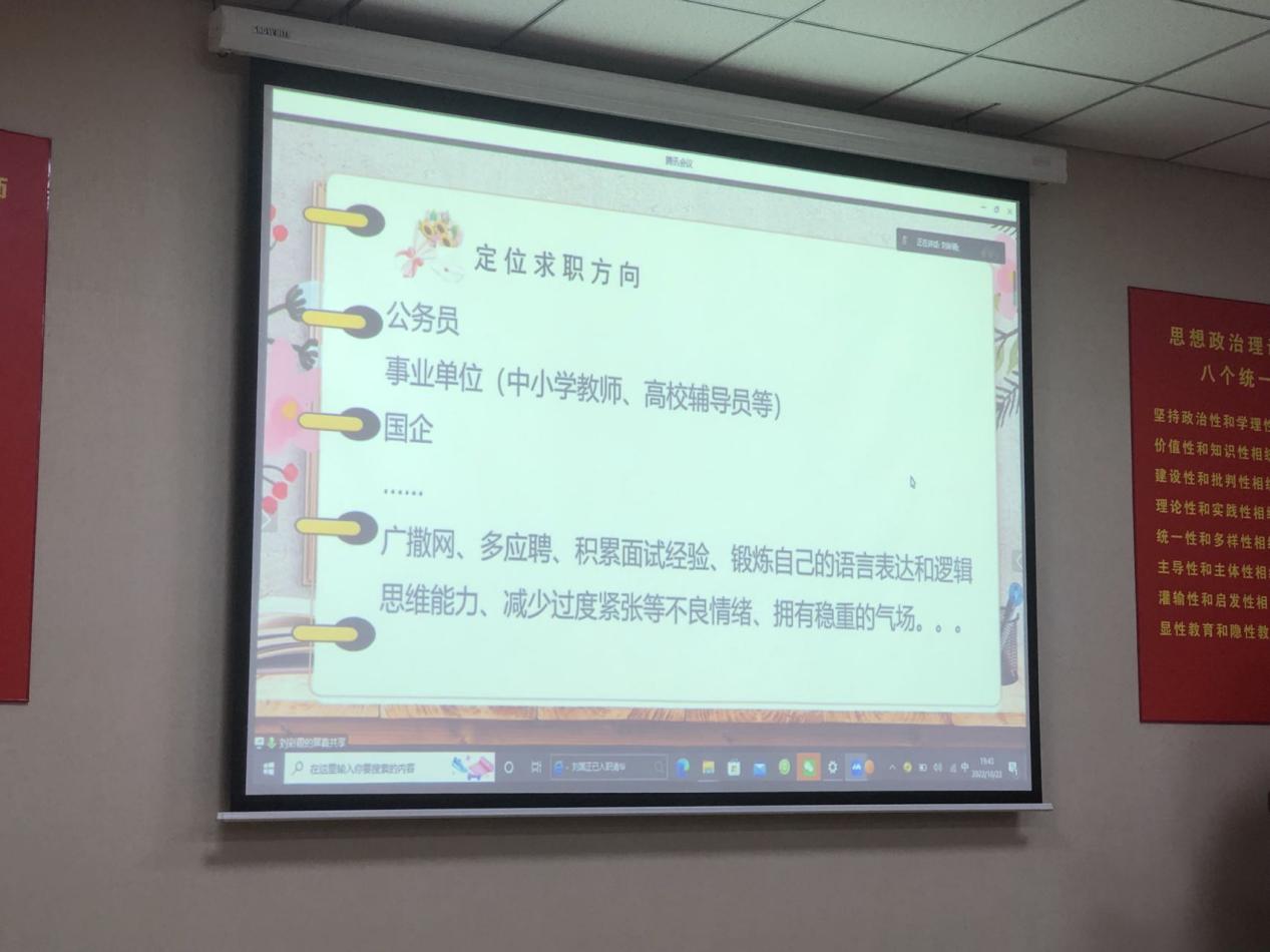 最后刘彩霞学姐为大家介绍了关于求职的相关经验,刘彩霞强调,同学们应当提早对求职方向进行定位,Beat365官方网站的学生,大致就业方向是相对明确的。无论是从事公务员、教师工作,还是就职于国企都是适合本专业特点的就业方向。根据刘彩霞的求职经验,在选择应聘教师岗位之前,要对各个学校的招聘情况进行分析,广撒网、多应聘,研究生期间,要主动地抓住每次实习的机会,找到自己适合并喜欢的工作,为日后的求职、就业积累经验、打下基础。