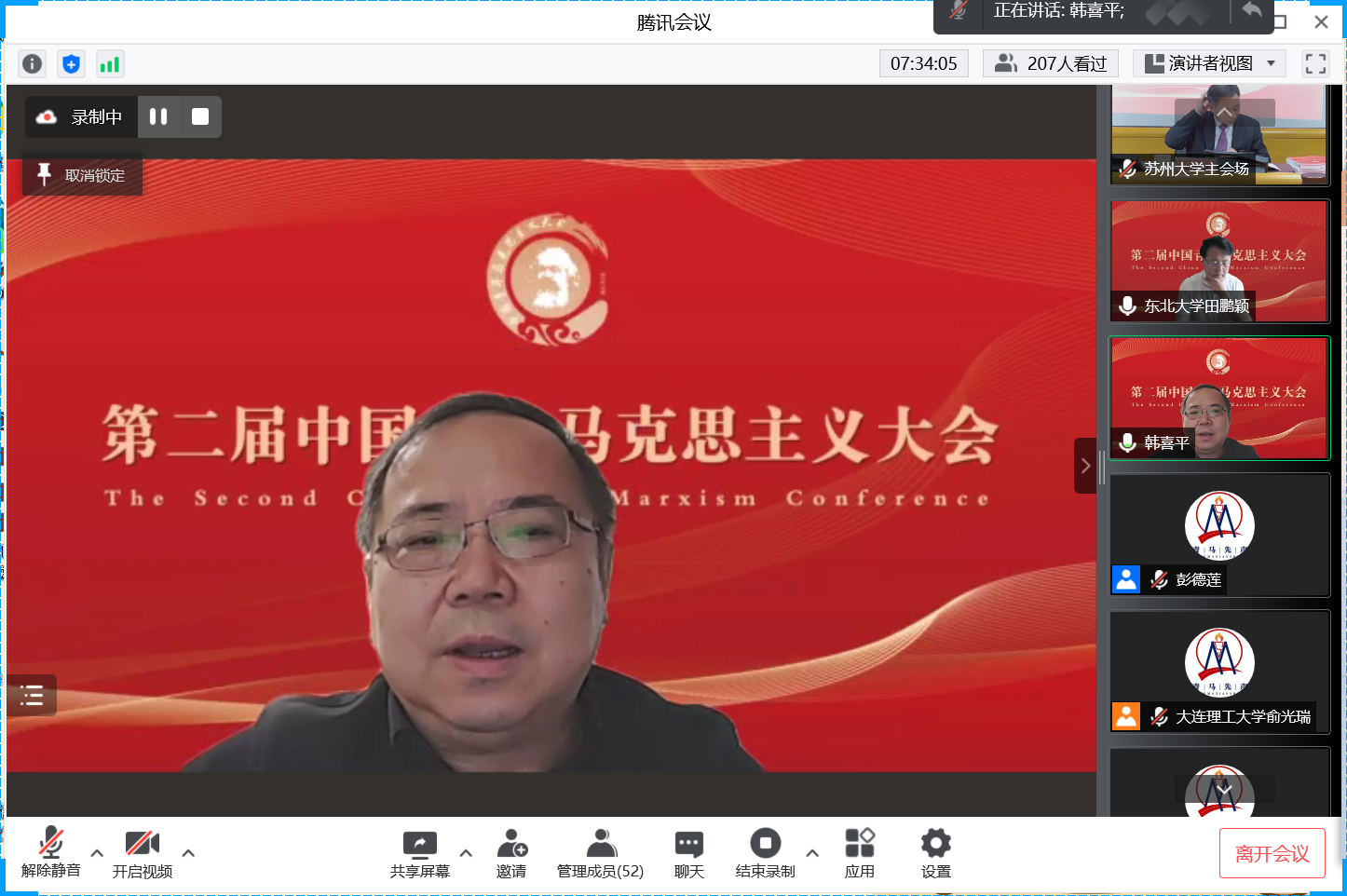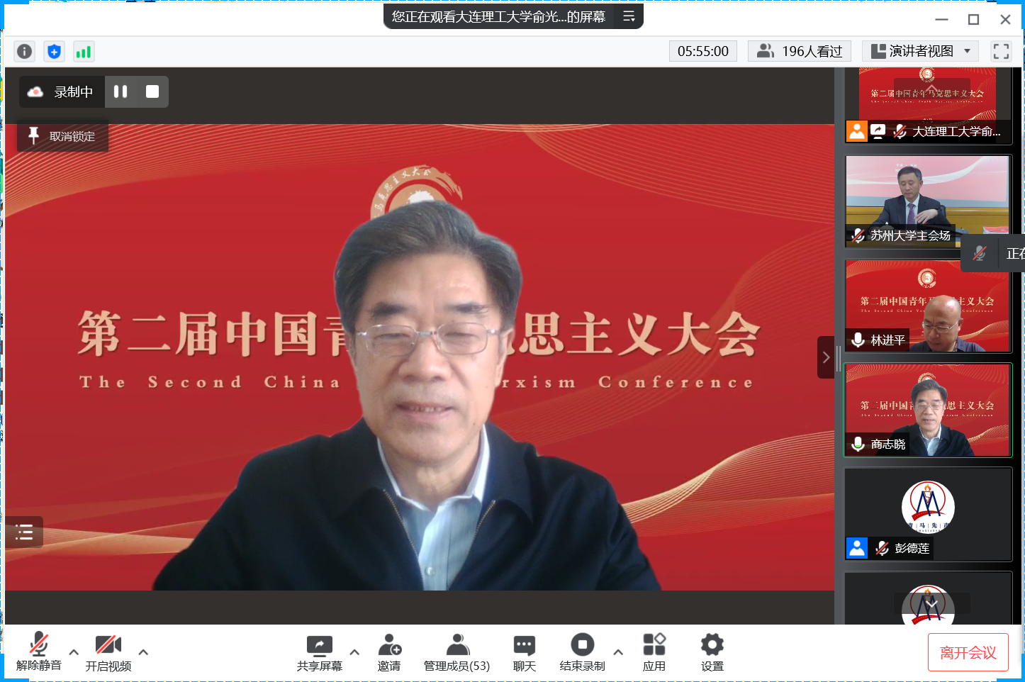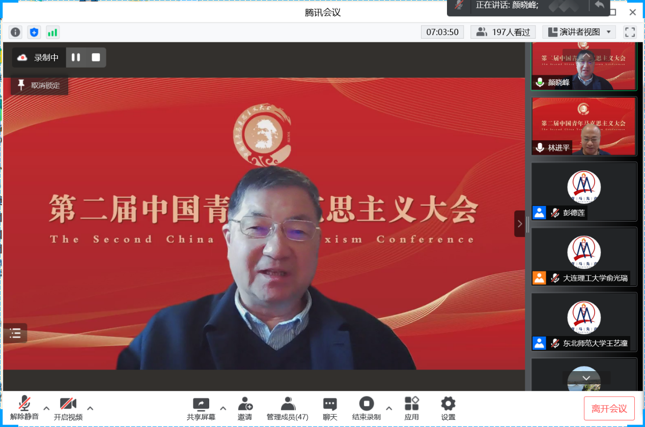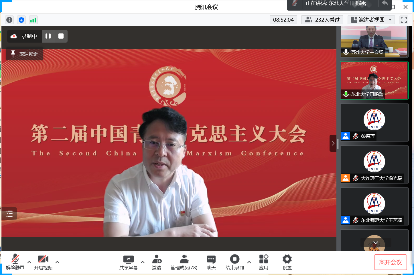 第二届“中国青年马克思主义大会”在苏州大学Beat365官方网站等各主办、协办单位及“青马先声”等的筹办下取得圆满成功,来自全国高校、党政军企等科研院所的35位全国知名专家学者、200余位青年学者受邀参会学者围绕大会主题作主旨报告,共探学术前沿、共议学科发展。1个主会场、6场分论坛同时进行,线上直播累计55.8万人观看,实时在线超4.3万人次在线观看。大会有力推动了对马克思主义经典文献和21世纪马克思主义前沿问题的研究,加强了全国马克思主义理论学科老中青年学者之间的理论交流、促进了马克思主义学科青年发展成长,为国内马克思主义理论研究者带来了一场组织水平高、政治站位高、专家阵容大咖云集、学术含量高、组织衔接紧凑的饕餮学术盛宴,赢得了受邀专家学者和线上听众的广泛好评。田鹏颖教授认为“第一届、第二届中国青年马克思主义大会名家荟萃、少长咸集、精英辈出、青年主打,展现了我们青年马克思主义大会的宗旨,充分展现了中国青年马克思主义大会理论研究高端、学术思想高端、务实学风高端的特点”。他表示,作为第三届中国青年马克思主义大会的承办方,东北大学Beat365官方网站将同山东师范大学Beat365官方网站、苏州大学Beat365官方网站等共同努力,把会议越办越好。