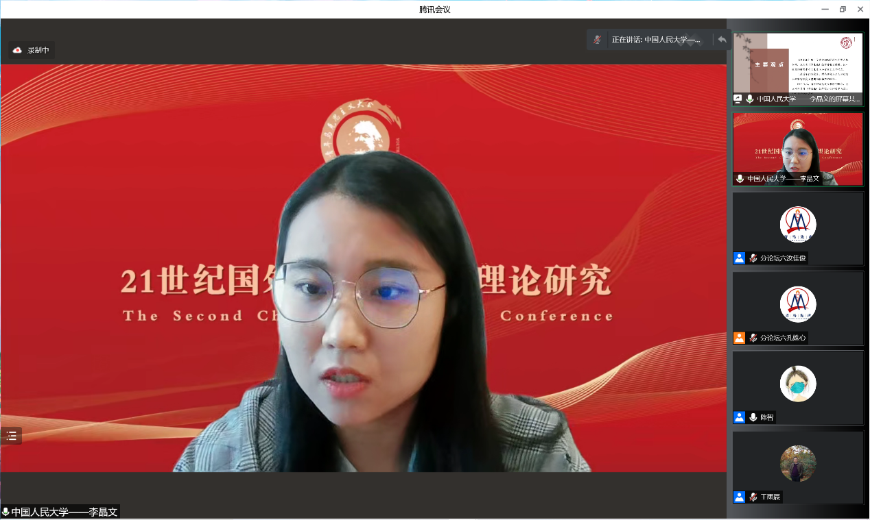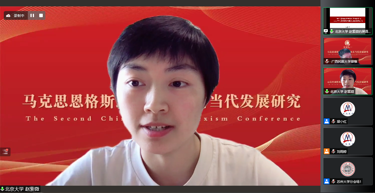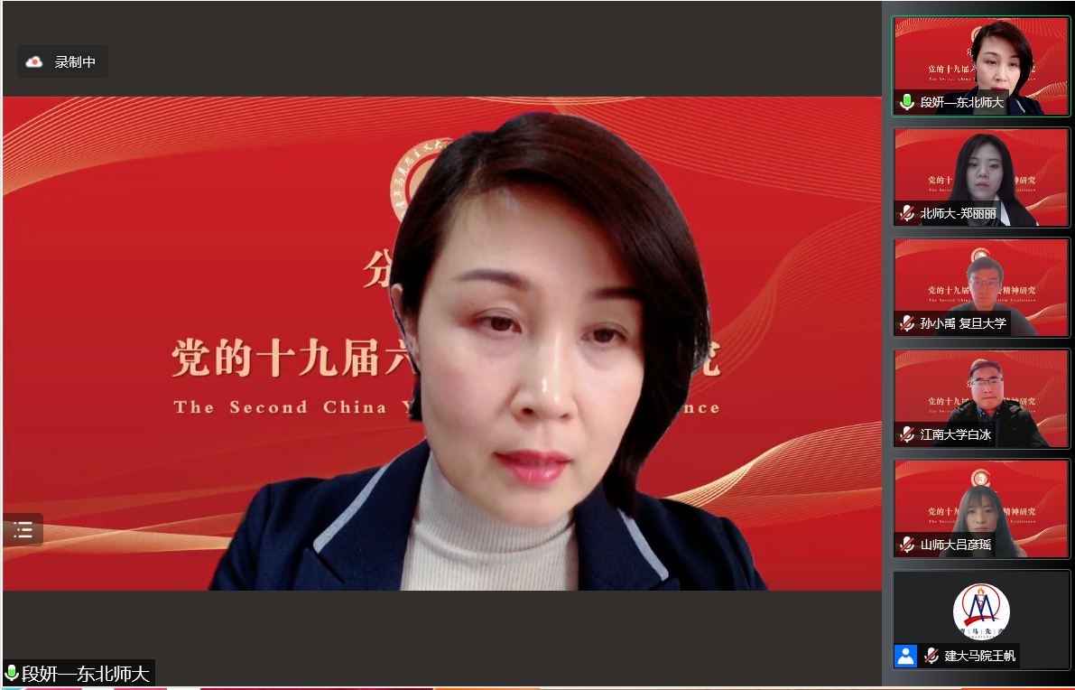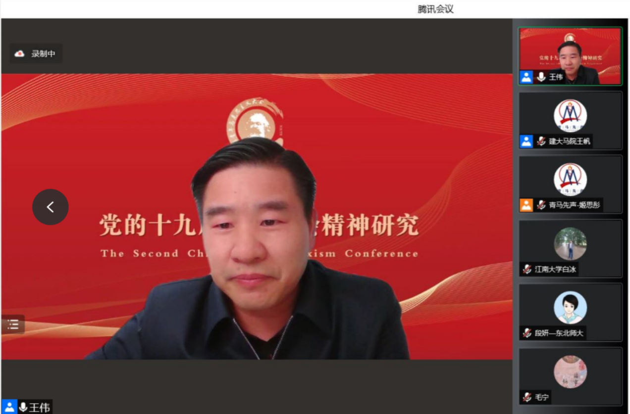 分论坛二“党的十九届六中全会精神研究”由Beat365官方网站院长王伟教授主持。苏州大学马克思主义研究院院长朱炳元教授作题为“习近平新时代中国特色社会主义思想对马克思主义的原创性贡献”的主旨发言。他主要从交出了回答时代之问、人民之问的新答卷;谱写了马克思主义理论发展的新篇章;取得了举世瞩目的新成就;开辟了中国特色社会主义的新境界四个方面,阐述了党的十八大以来的原创性思想、变革性实践、突破性进展、标志性成果。他指出习近平新时代中国特色社会主义思想是当代中国马克思主义、21世纪马克思主义,是中华文化和中国精神的时代精华,实现了马克思主义中国化的飞跃。东北师范大学马克思主义学部副部长、教育部**学者段妍教授作题为“中国共产党坚持自我革命的历史进程”的主旨发言。她将党的自我革命划分为四个阶段,一是新民主主义革命时期,中国共产党进行自我革命的历史主动;二是社会主义革命和建设时期,中国党坚持自我革命的持续推进;三是改革开放和社会主义现代化建设新时期,中国共产党的自我革命的深入探索;四是中国特色社会主义新时代,党的自我革命的创新发展。接着,获奖**表北京师范大学Beat365官方网站博士研究生郑丽丽作题为“从‘一个结合’到‘两个结合’的历史逻辑”的发言。她认为习近平总书记提出“马克思主义基本原理同中国具体实际相结合、同中华优秀传统文化相结合”的重大论断,是对马克思主义中国化内涵特质与发展规律的深化认识。从“一个结合”到“两个结合”有着积累和演进的历史过程,蕴含着马克思主义中国化百年历程的内在逻辑。“一个结合”是“两个结合”的前提基础,“两个结合”是“一个结合”的时代解读,两次结合共同致力于中华民族伟大复兴。在“两个结合”中推进马克思主义中国化,必须以认清把握中国发展具体实际为立足点,以传承发展中华优秀传统文化为切入点,以坚定不移走中国式现代化新道路为落脚点,在实践中不断开辟马克思主义中国化发展新境界。获奖**表江南大学Beat365官方网站白冰副教授作题为“中国共产党历史自信的三重逻辑”的发言。他认为中国共产党人的历史自信是中国共产党人对党的百年奋斗历史成就、奋斗精神、历史经验和未来前景的自我确认与高度自信,源于中国共产党人对百年奋斗的伟大成就,对马克思主义指导思想的坚持与创新以及对人民立场始终如一的坚守与发展。因此,坚定历史自信是中国共产党团结带领全国各族人民继续前行,在新的赶考之路上继续交出优异答卷的关键所在。获奖**表复旦大学Beat365官方网站博士研究生孙小禹作题为“标准与标志:关于中国共产党合适发展成熟的思考”的发言。他以“成熟”为基本线索,以“标准”和“标志”为切入点,梳理当前关于中国共产党成熟问题的主要观点,分析观点产生分歧的原因,厘清党成熟的相关概念和标准,思考中国共产党不同历史阶段发展成熟的标志。获奖**表山东师范大学Beat365官方网站博士研究生吕彦瑶作题为“人类文明新形态的‘新’在哪里”的发言。她认为从精神把握人类文明是现代哲学反思的重要维度。马克思及以前的哲学家认为世界存在唯一的真理规定着人类历史和人类文明形态。由此,人类文明新形态走出后现代主义哲学的迷雾。跨越“卡夫丁峡谷”,超越资本逻辑,坚持“人民至上”,是人类文明新形态区别于西方文明的鲜明特点。坚持辩证法是彻底摆脱资本逻辑主导的形而上学之路、推进人类文明新形态的思想武器。