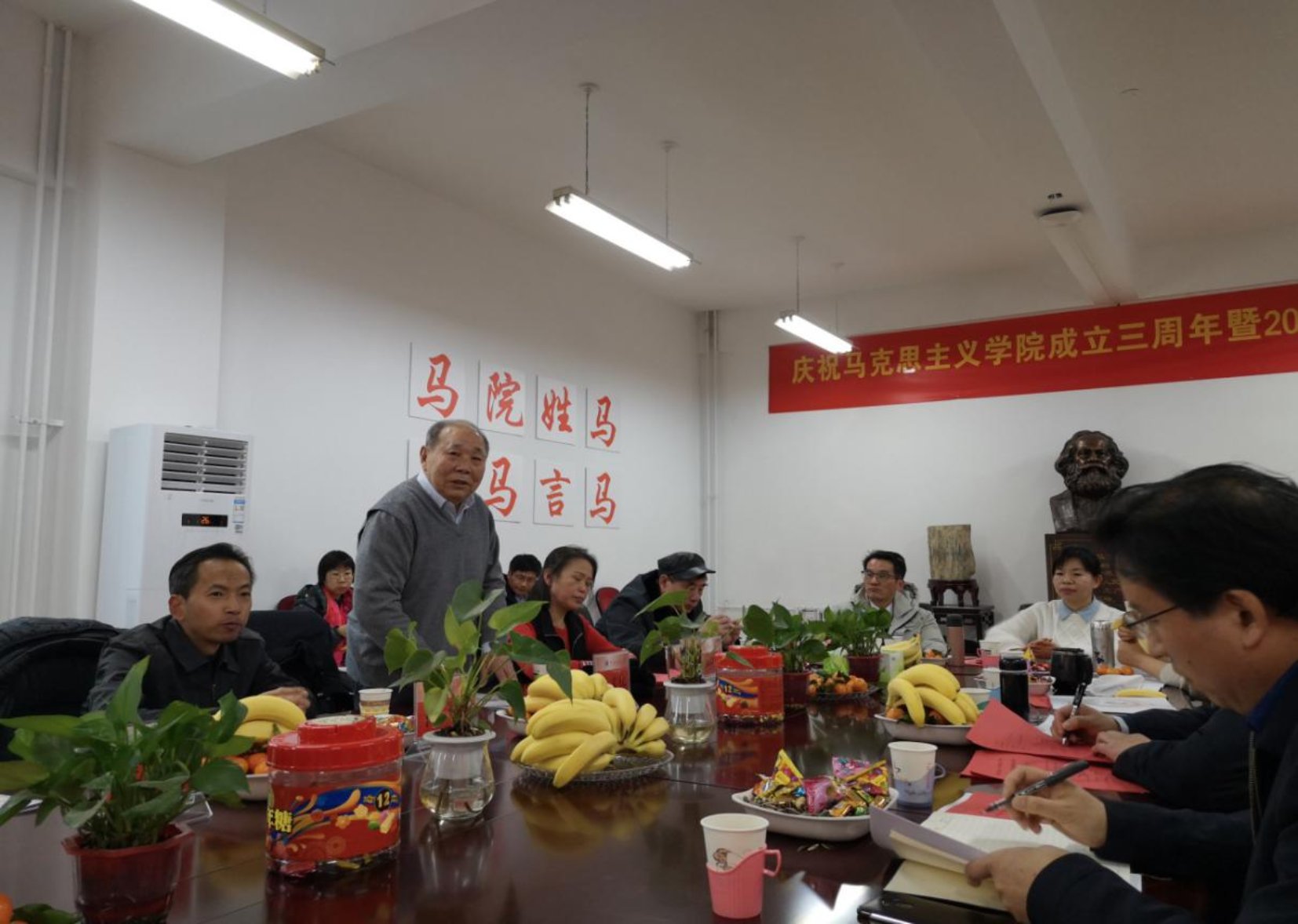 随后,在座教师依次发言。刘玮玮、杨海就国家社科基金申报的基本情况分享了自身的经验;张文化指出,要抓住学院发展的最佳时机,迎接挑战,并分享了自身在研究过程中总结的经验和体会,告诫大家不要搞教条主义和奴隶主义,趁着年轻要多读书,多研究实际问题,要向有经验的同志们学习,集百家智慧,搞好自己的研究;黄庆业对学院新进老师表示热烈欢迎,祝愿学院人丁兴旺,后继有人,要更加努力的培养社会主义建设者和接班人;许丹娜对教师教学提出了进一步的要求;孙晓洁从教学内容、教学组织、教学方法、教学态度、教学效果五个方面给出教学督导建议;薛敬鼓励老师们要积极引入新的教学手段和教学理念;其他教师亦在其学习、工作、生活等方面与大家分享了这一年的收获,并表示要在新的一年里砥砺前行,更进一步。