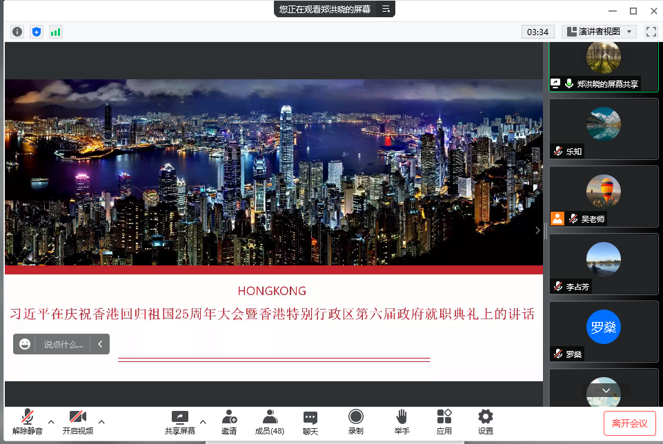 在自由发言阶段,老师们围绕香港回归25周年及习近平总书记的重要讲话展开了热烈讨论。