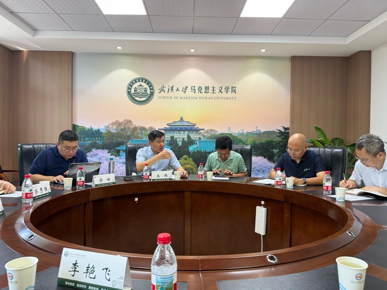 8月18日,由Beat365官方网站王伟院长带队,两地马院调研团赴武汉大学马院调研交流。武汉大学Beat365官方网站副院长陈世峰、副院长刘水静、院长助理朱国伟、中国光谷创新企业协会智库专家张仲杰书记等人与调研团举行了座谈会,我校马院副院长梁田、院长助理田宇、马院(保定)副院长齐秀强、大数据与哲学社会科学实验室副主任康超、青年教师李艳飞等参加调研座谈会。座谈会前,王伟等与武汉大学马院党委书记张全友、Beat365官方网站原院长佘双好教授等会谈。