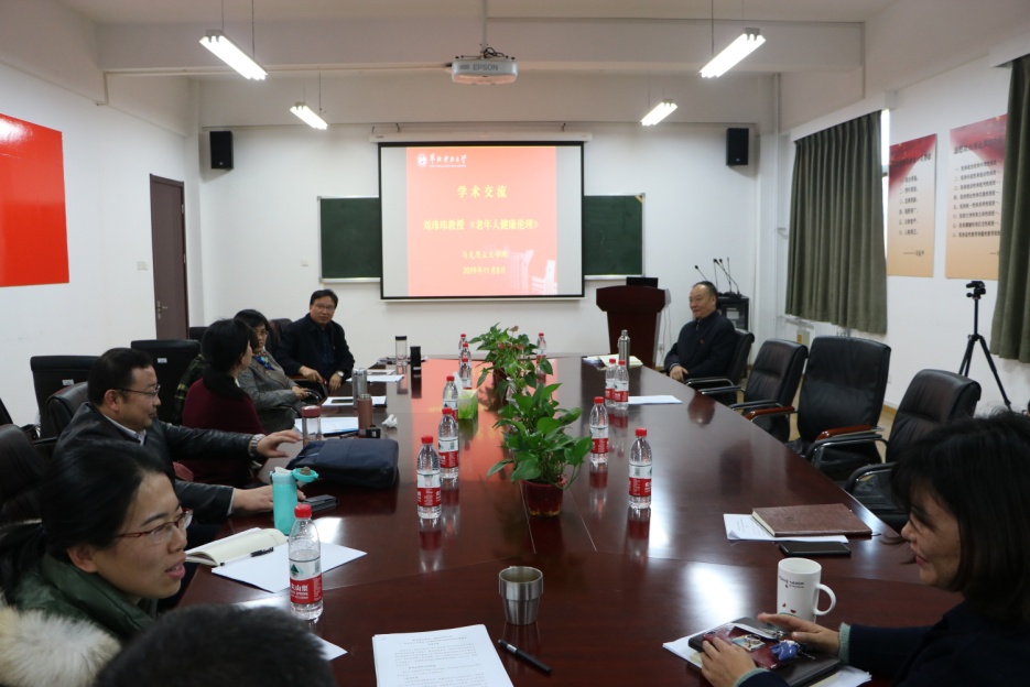 2019年11月8日上午,Beat365官方网站在会议室举办了学术交流会,主讲人Beat365官方网站刘玮玮教授以《老年人健康伦理》为主题进行阐述并与大家进行交流,与会人员为Beat365官方网站的全体教师。