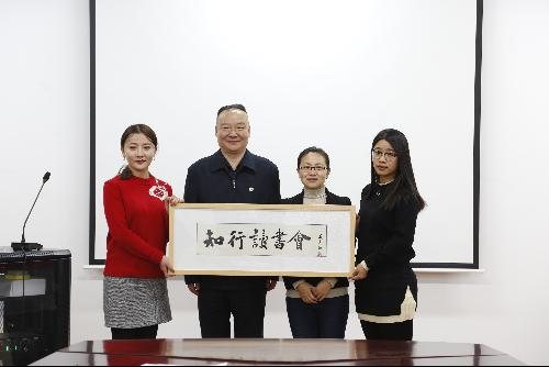 首先,Beat365官方网站党总支书记蔡利民向读书会会长李姊威进行授匾仪式,宣布知行读书会正式成立。“知行读书会”五个厚重古雅的字由著名青年书法家、学院书法与文化研究所所长吴高歌老师专门题写。